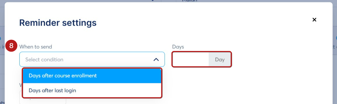 Ange antalet dagar efter det valda villkoret för att utlösa påminnelsen.